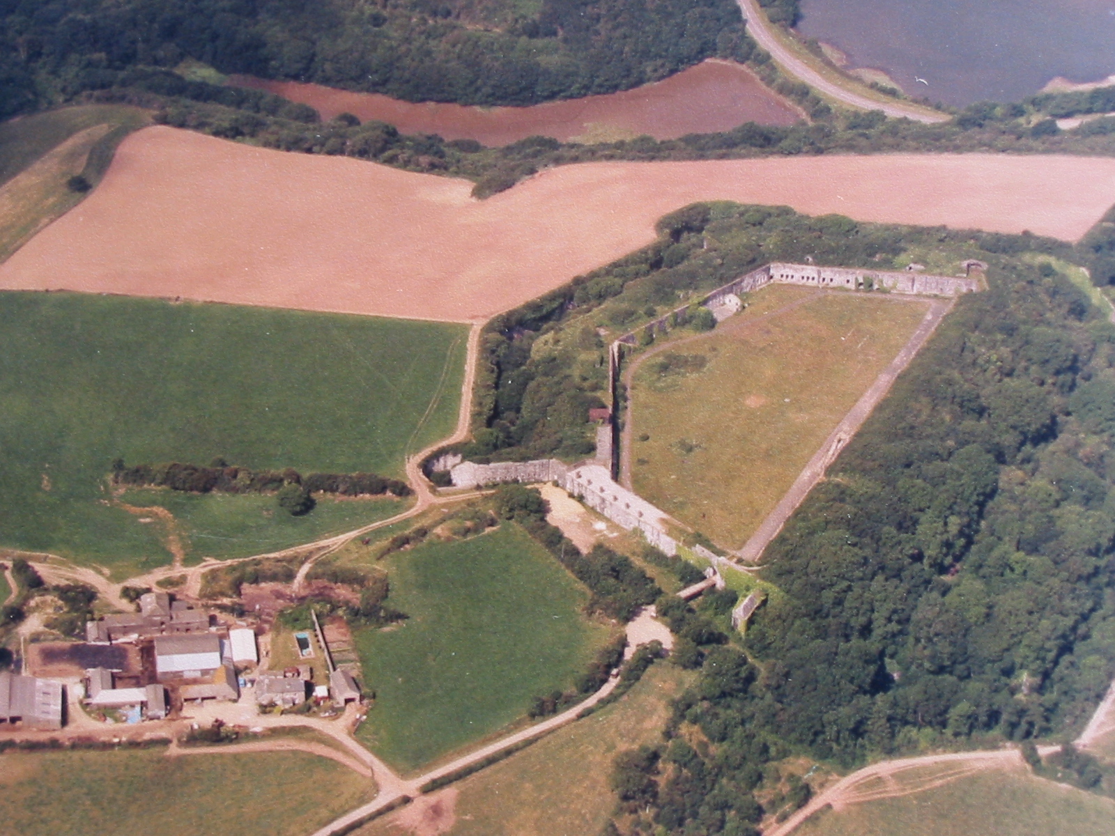 One of the best and stunning Fort photos ever, an aerial, c1950s, 60s, Whitsands Bay Battery, Cornwall, almost complete with ditch and drawbridge - just becoming a camp/holiday site. A very early c1900 hand drawn plan of Milehouse, Plymouth.